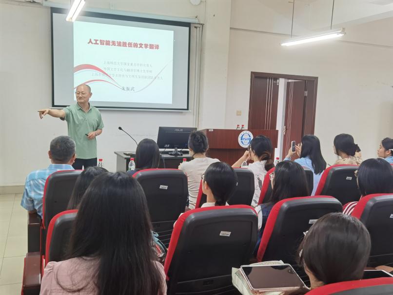 2025929日,中国资深翻译家、上海市二级教授、国家重点学科负责人、上海师范大学外国文学研究中心主任朱振武教授应我校外国语文研究中心邀请,为师生作了一场题为《人工智能无法胜任的文学翻译》的精彩学术讲座。此次讲座由我校DTI博士生导师、外国语文研究中心研究员蒋林教授主持。